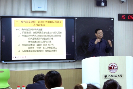 2025年10月18日下午,中国政法大学二级教授、博士生导师,教育部政治学类教学指导委员会副主任委员杨阳教授为我院师生作了一场题为《国家能力与民主化:中国现代国家构建之路径》的学术报告。报告在我校长安校区正心楼306教室举行,张师伟教授主持,学院部分教师、研究生和本科生参加学习。